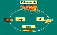Echt effectieve vlooienbestrijding bestaat dus niet alleen uit het gebruik van middelen die de volwassen vlo doden, maar moet ook middelen omvatten die op larven en eitjes werken: een geïntegreerde controle van de levenscyclus van de vlo.