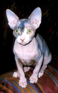 Toen Prune gekruist werd met een onverwante korthaar kat, werden uitsluitend normaal behaarde kittens geboren. Door deze kittens onderling te kruisen werden er zowel normaal behaarde als naakte kittens geboren.
